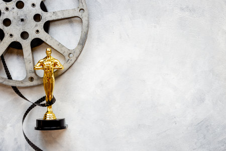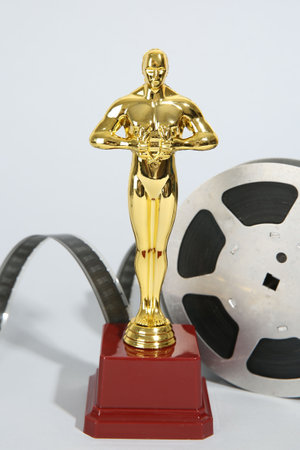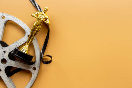 Film reel video tape with golden award statue