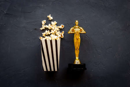 Cinema industry concept with film award statue in popcorn