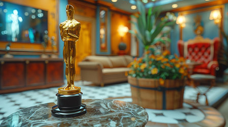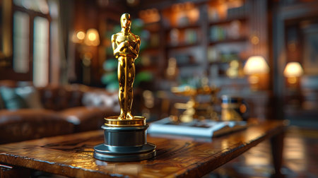 Oscar statue on wooden table