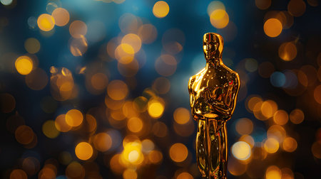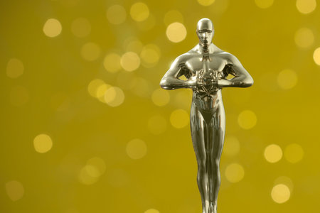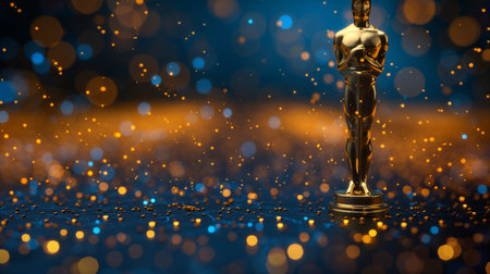 Golden trophy statue on a bokeh background for film awards ceremony