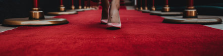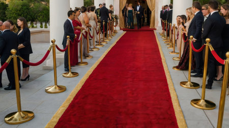 Red carpet with golden barriers and red ropes before an important event in the world of fashion and art. glamorous movie premiere or festival.