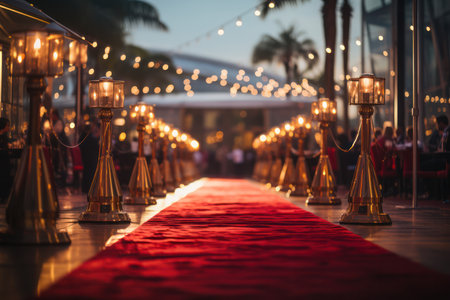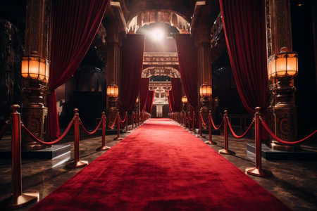 A red carpet with candles and a red carpet. AI generative image.