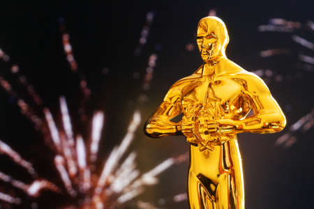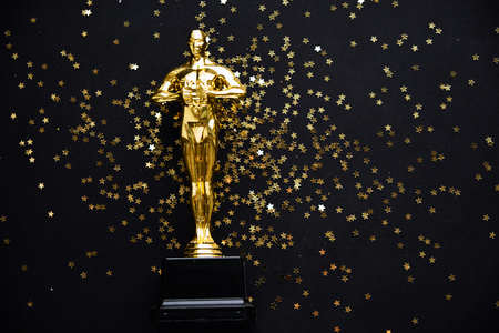 Hollywood Golden Oscar Academy award statue. Success and victory concept.
