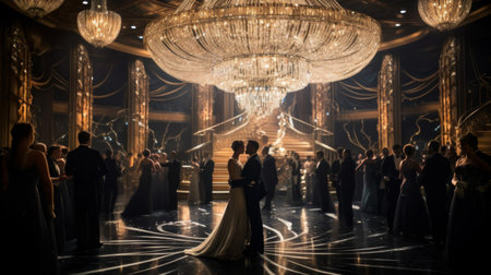 1920s ocean liner ballroom couples waltz crystal chandelier above