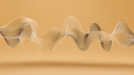 An illustration features a sound wave design with fluctuating white lines set against a dark backdrop. The composition shows dynamic forms suggesting sound or signal transmission. The image utilizes transparency and highlights the wave patterns, suitable for digital media, presentations, and educational resources.
