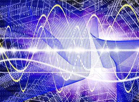 An abstract illustration presents a blue wave pattern against a black background. The image showcases the flowing energy with a focus on lines and form. It uses a blend of light and shadow, and the digital style suggests potential uses in visual communications or scientific presentations.