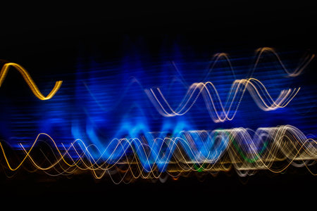 Abstract blue wavy lines of light against a dark background, suggestive of sound or data