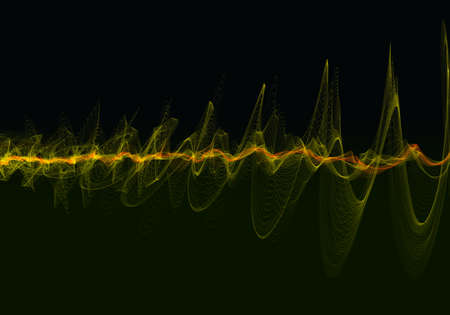 This vibrant illustration depicts an electric wave pulsing with bright energy, showcasing dynamic light effects against a deep black background.