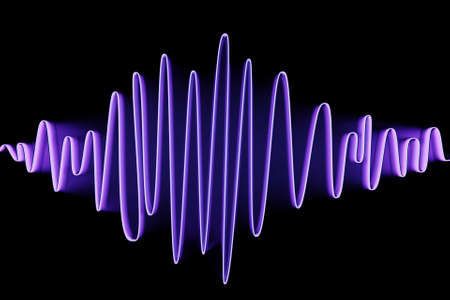 3d illustration of purple glowing color lines. Musical line equalizers on black isolated background