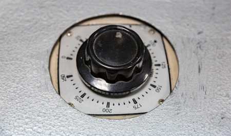Old vintage temperature regulator in an industrial oven