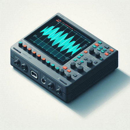 Close-up of an oscilloscope displaying a detailed electrical waveform, with a focus on the signal's amplitude and frequency -