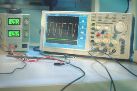 Modern digital storage oscilloscope in laboratory