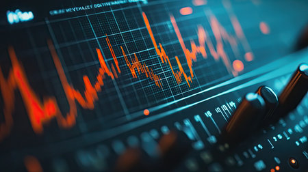 A close-up, dynamic shot of a glowing red and orange audio waveform and graphic equalizer on a digital screen. The image visually represents sound, frequency, and amplitude, capturing the energy of music or voice. It's an ideal visual for topics related to audio engineering, music production, podcasts, and sound technology.