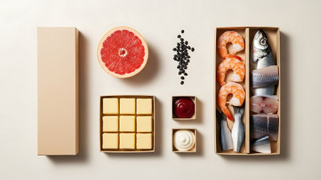 A selection of premium food items arranged on a table.