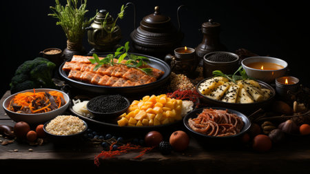 a captivating visual display showcasing an array of delectable dishes, culinary delights, and appetizing snacksCraft an engaging food banner that entices the viewer s appetite with an eclectic assortment of savory and sweet treats