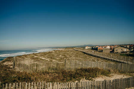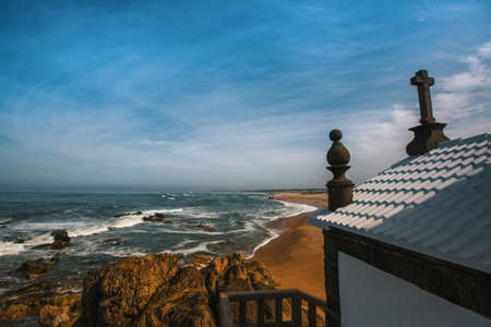 Miramar Beach and Chapel Senhor da Pedra, Atlantic ocean near Porto, Portugal.