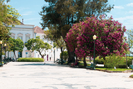Faro, Portugal - April 9 2020. View of the city center of Faro next to the harbor in a summer day. Algarve.