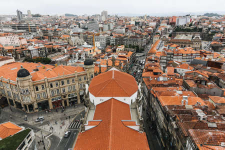Aerial view of city center of beautiful Porto at the evening, Portugal