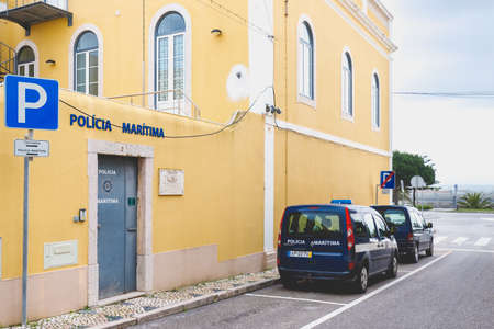 Figueira da Foz, Coimbra, Portugal - October 25, 2020: Maritime police car (Policia Maritima) parked in front of a police station on a fall day