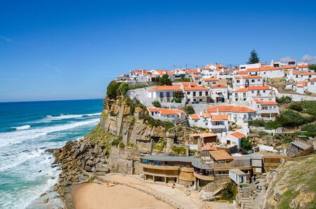 Beautiful coastal view of Praia Azenhas do Mar near Sintra, Lisbon. Praia Azenhas do Mar is one of the best beach in Portugal.