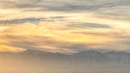 Captivating view of vibrant clouds during sunset over majestic mountains, showcasing the beauty of nature with a stunning display of color and light.