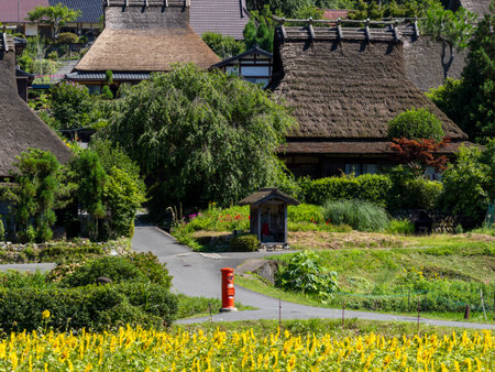 Sunflowers in full bloom at Miyama Kayabuki Village in summer
