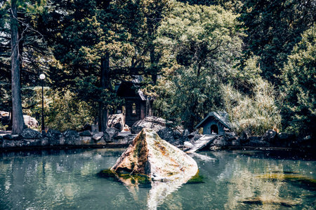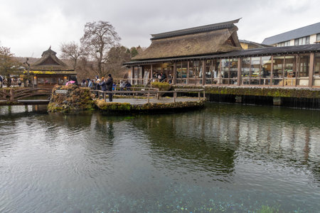 Oshino, Japan- 20 Dec 2025: View of Oshino Hakkai in Japan. Oshino Hakkai is home to eight sacred ponds fed by the crystal-clear waters of Mount Fuji's snowmelt
