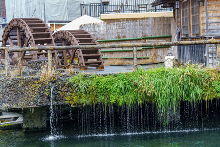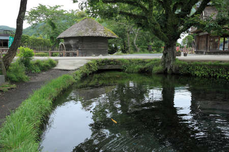 Oshino Hakkai, Japan, Yamanashi, September 16, 2013 Fresh water pond and watermill