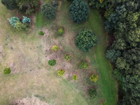 Aerial view of beautiful garden. Top view of landscaped garden.