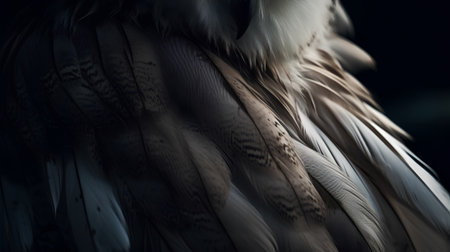 a large eagle with a strong facial expression is captured against a black background. the photo is taken using a lensbaby composer pro ii with edge 50 optic, resulting in a close-up shot with intense details. the image boasts 20 megapixels and is presented in 32k uhd resolution. the colors featured are dark white and dark emerald. ai generated