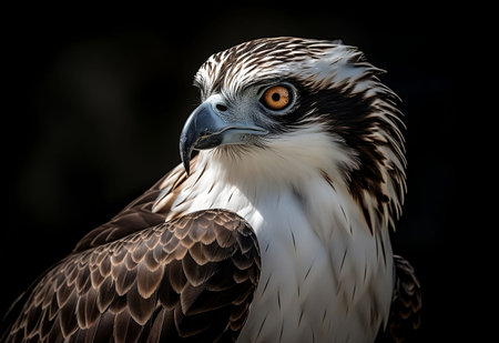 An AI generated illustration of an Osprey (Pandion haliaetus) against a black background