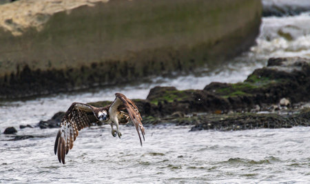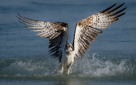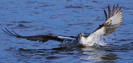 Osprey catching a fish in the sea. Wildlife scene.