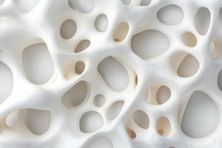 This image features an abstract white organic shape filled with hollow openings, offering visual depth and texture, perfect for backgrounds and artistic projects.