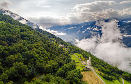 Valtellina (IT) - Church in S. Maria Perlungo near Carnale - Aerial view