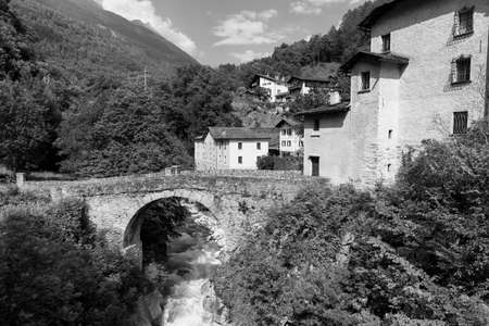 Breagaglia (Grigioni, Graubunden, Switzerland): historic village on the road to Maloja. Black and white