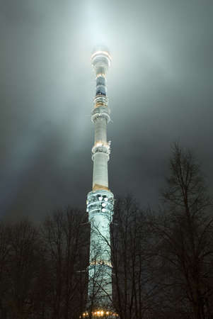 Moscow tv tower, Ostankino, night, very nebulosity