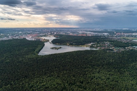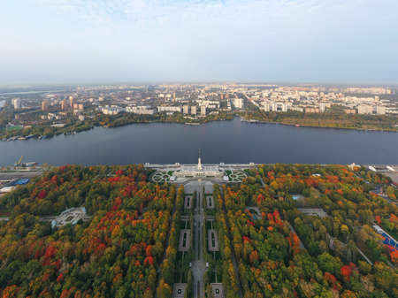 Aerial view of School lake in autumn in Zelenograd in Moscow, Russia
