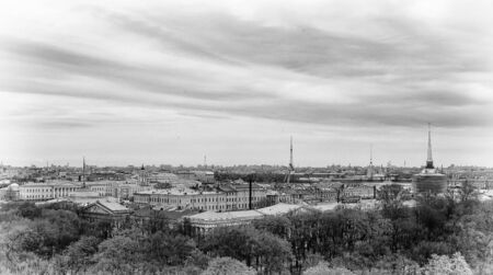 Panorama of Saint Petersburg in black and white, Russia