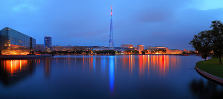Ostankino TV Tower and Palace Pond in Moscow