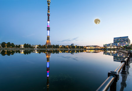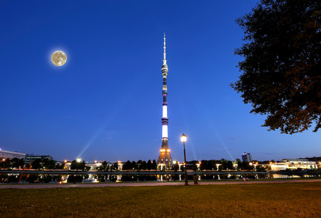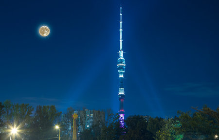 Television (Ostankino) tower at night (with the super moon), Moscow, Russia
