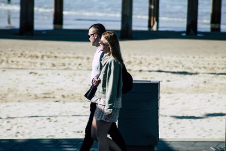 BELGIUM, OSTEND - MAY 27: View of Ostend Beach, Belgium on May 27, 2015, leisure at the sea in cold weather