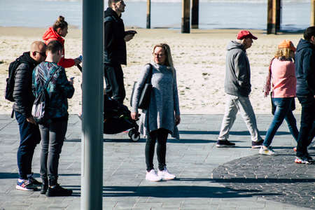 BELGIUM, OSTEND - MAY 27: View of Ostend Beach, Belgium on May 27, 2015, leisure at the sea in cold weather.