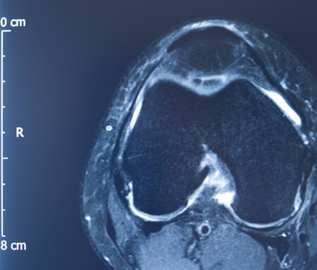 Knee joint meniscus x-ray test scan results photo showing injury and pain for orthopedic surgery and Traumatology surgical treatment.