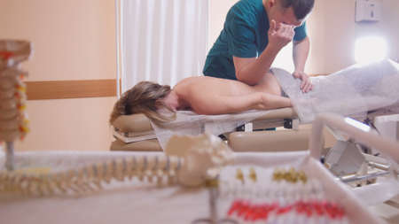 Chiropractor massage the female patient spine and back