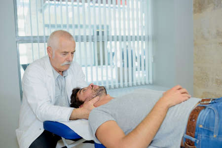 Physiotherapist working on massaging a patient in the neck. Concept of physiotherapy and rehabilitation