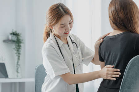 Doctor check up and discuss with patient in clinic or doctor talk with women patient in hospital