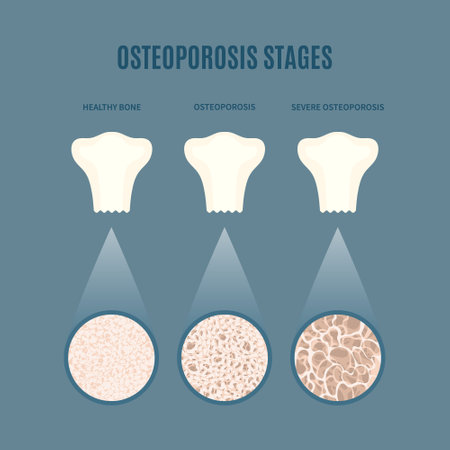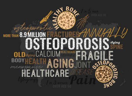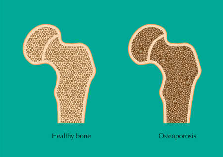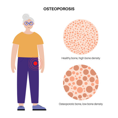 Osteoporosis concept showing bone degeneration and risk of fractures.
