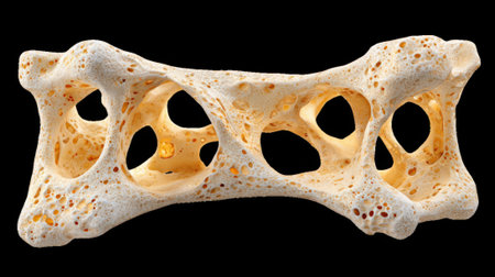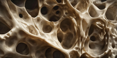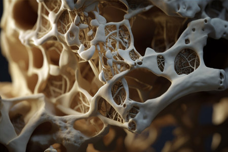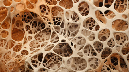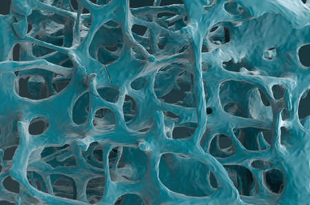 Realistic bone spongy structure close-up, bone texture affected by osteoporosis, 3d illustration