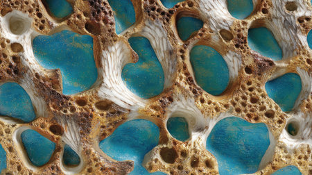 Organic cellular structure osteons matrix. Futuristic bio cement. Generative AI.