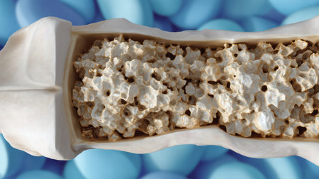 calcium deposits forming in regenerating bone tissue, created with generative ai